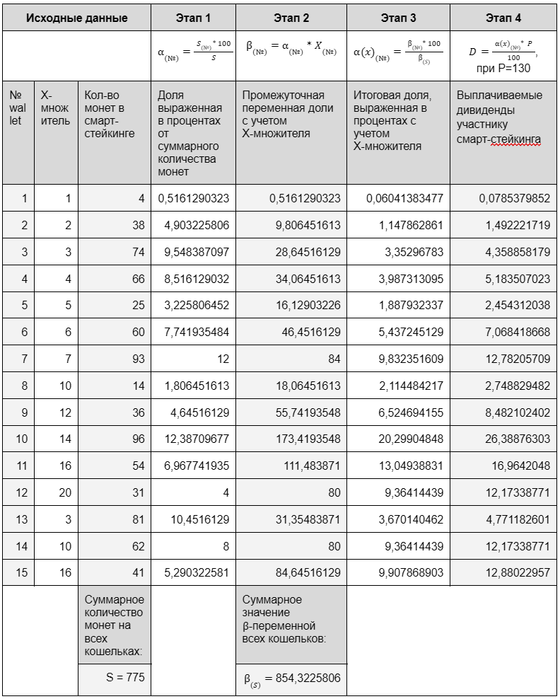 Итоговое распределение дивидендной доли с учётом X-множителя рассчитывается по следующей формуле: